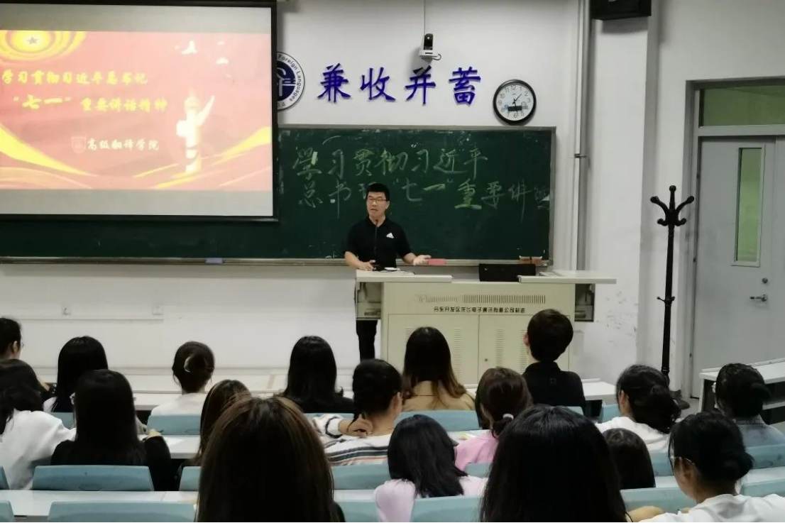 的新鲜血液中埋下服务集体、回报社会的种子。百年栉风沐雨,百年风雨兼程,不变的是爱党敬党的情怀,不变的是砥砺前行的坚定。相信在今后,高翻学子将砥身砺行,奋发蹈厉,在第二个百年奋斗目标的新征程上谱写青春华章。