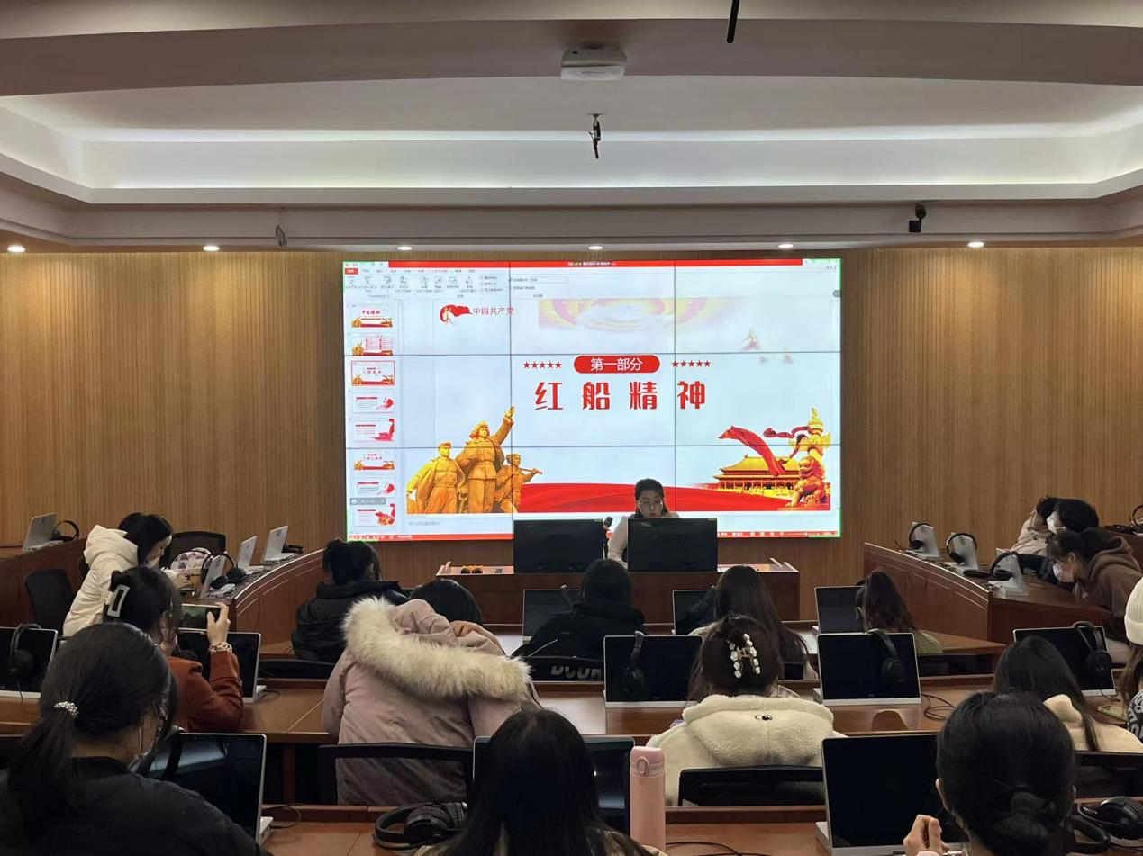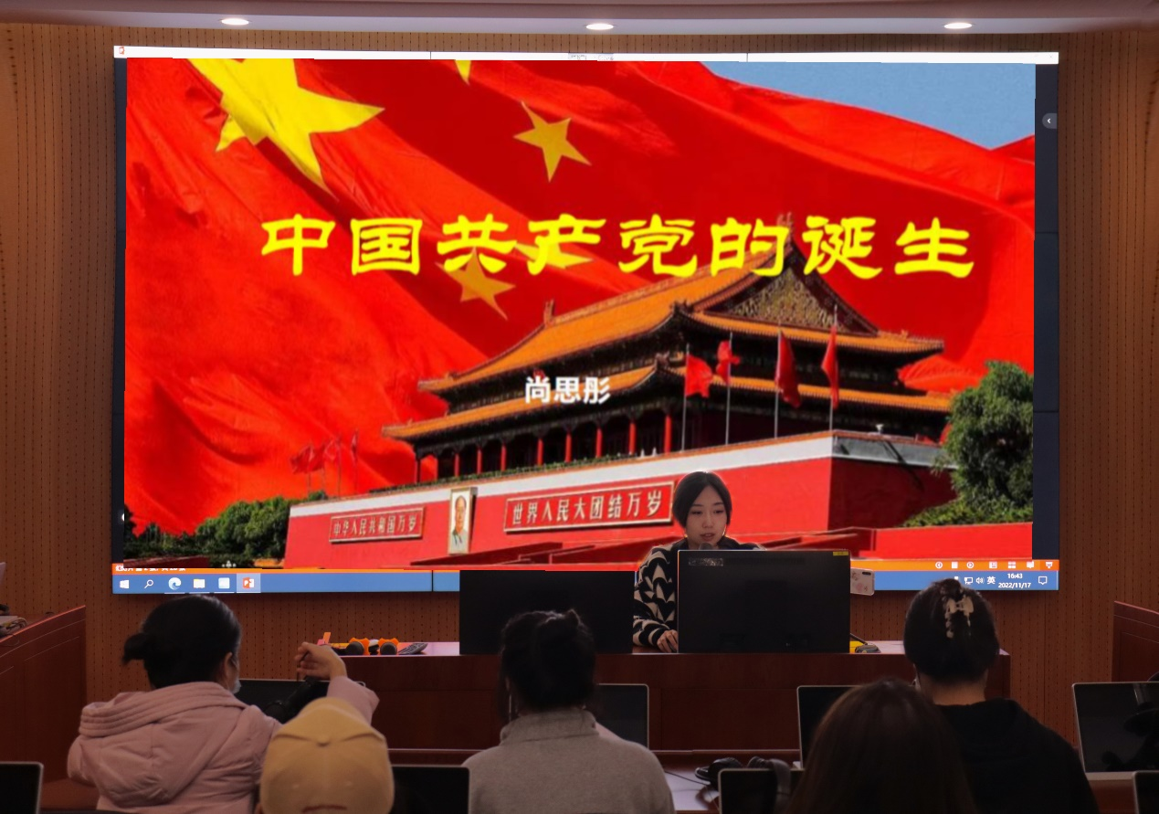 本讲党课的主题为“中国共产党的诞生”。尚思彤首先从思想基础、组织基础、群众基础等几个方面阐述了中国共产党诞生的历史条件。接着,她向大家详细介绍了中共一大、二大召开的内容。最后,她深刻总结了中国共产党诞生的伟大意义,指出:“中国诞生了共产党,这是开天辟地的大事变,中国革命的面貌从此焕然一新。”党课结束前,尚思彤给大家播放了近代中国伟大抗争奋斗历史征程的相关视频,视频中一幕幕英勇无畏、振奋人心的场景让同学们倍受鼓舞。