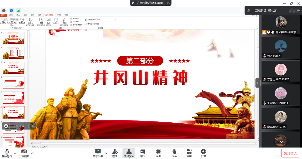 于励业楼502教室以线上线下相结合的形式召开主题为“发挥党员表率,积极担当作为”的入党积极分子党课第十三讲,本次党课由优秀预备党员赵怡菲主讲。