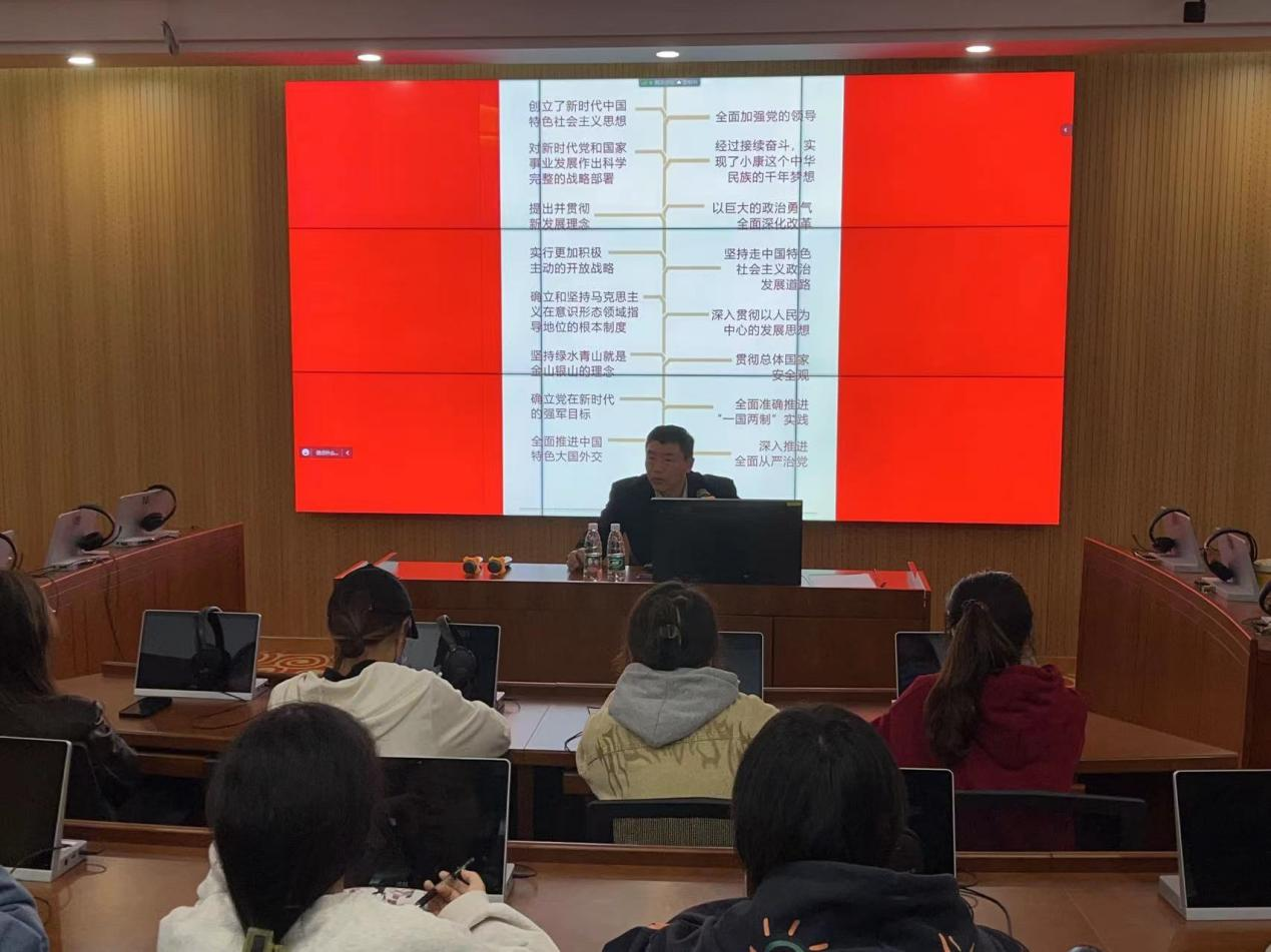 党课开始时,徐院长首先介绍了二十大召开的伟大意义,他强调:“中国共产党第二十次全国代表大会是在全党全国各族人民迈上全面建设社会主义现代化国家新征程、向第二个百年奋斗目标进军的关键时刻召开的一次十分重要的大会。”其次,徐院长用我们应该举什么旗、走什么路、以什么样的精神状态举旗走路、朝着什么目标继续前进等几个问题引发同学们对大会主题的深刻思考。接着,徐院长从多个方面详细解读了二十大报告。徐院长旁征博引,深入浅出,既浓缩了二十大精神的精华,又让同学们拓宽了知识面。