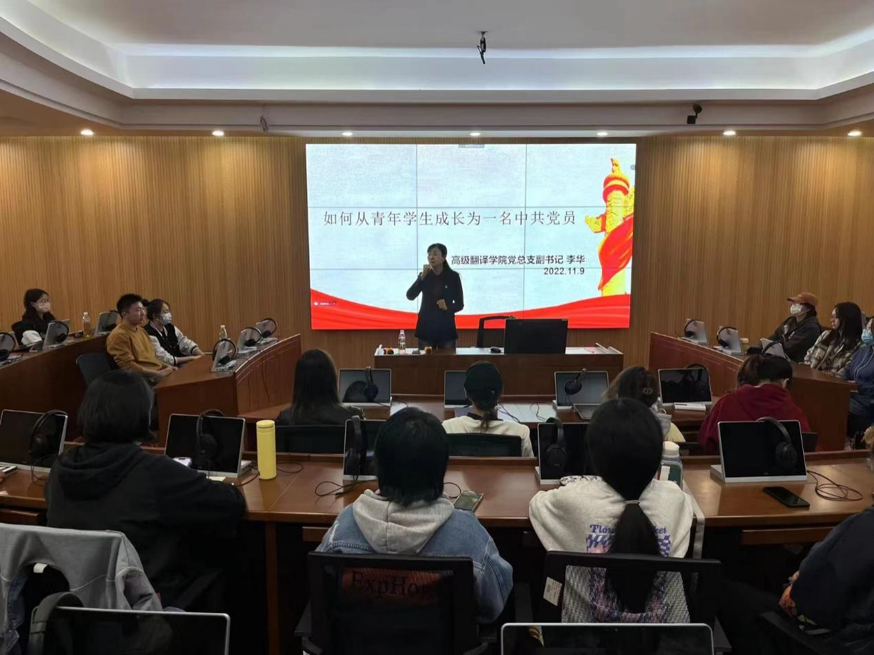 于励业楼502教室以线上线下相结合的形式召开主题为“如何成长为一名合格的共产党员”的入党积极分子党课第四讲,本次党课由网上博彩平台推荐