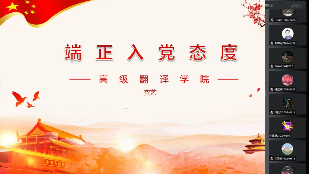 龚艺老师重点强调了端正入党动机和入党态度的重要性,并再次详细介绍了入党流程,并从学生案例向大家剖析如何才能成为一名合格的党员。