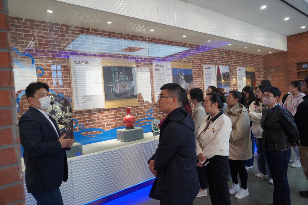 然后,学生队伍在社区工作人员带领下参观椒金山小巷博物馆并步行“漫街”,参观城市记忆咖啡厅,欣赏大连城市老物件,体会二十世纪七八十年代人们的生活方式。学生在工作人员细致的讲解中沉浸式感受“钢铁故里”中文化与科技融为一体带来的体验,聆听大连钢铁发展史,观摩一幅幅早期工人辛勤工作场景的绘画,并从老一辈的峥嵘岁月中学习到开拓进取的精神。
