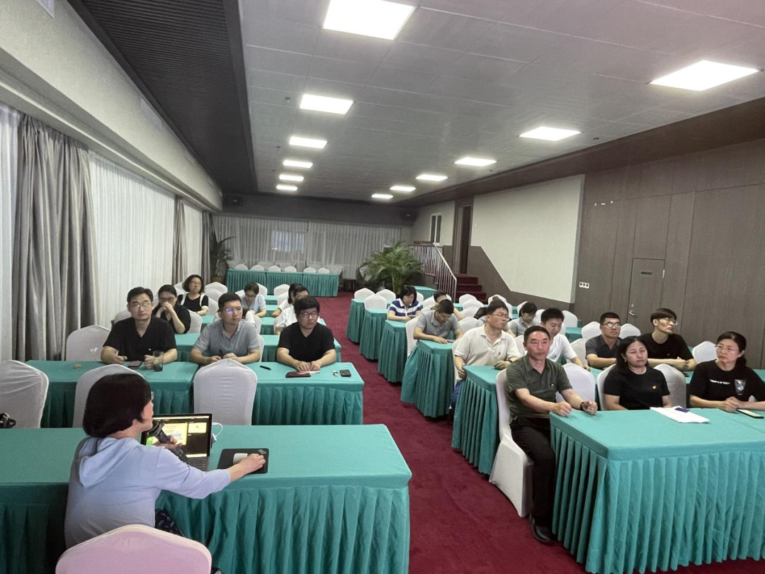 李春姬院长以《坚持学思用贯通、知信行统一,打造新时代“双师型”翻译教师队伍》为题,为全体教工党员和非党员教师讲了一堂高质量主题教育党课。