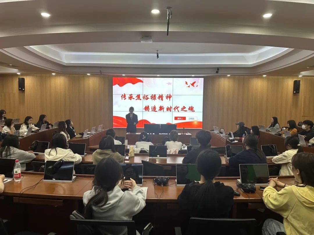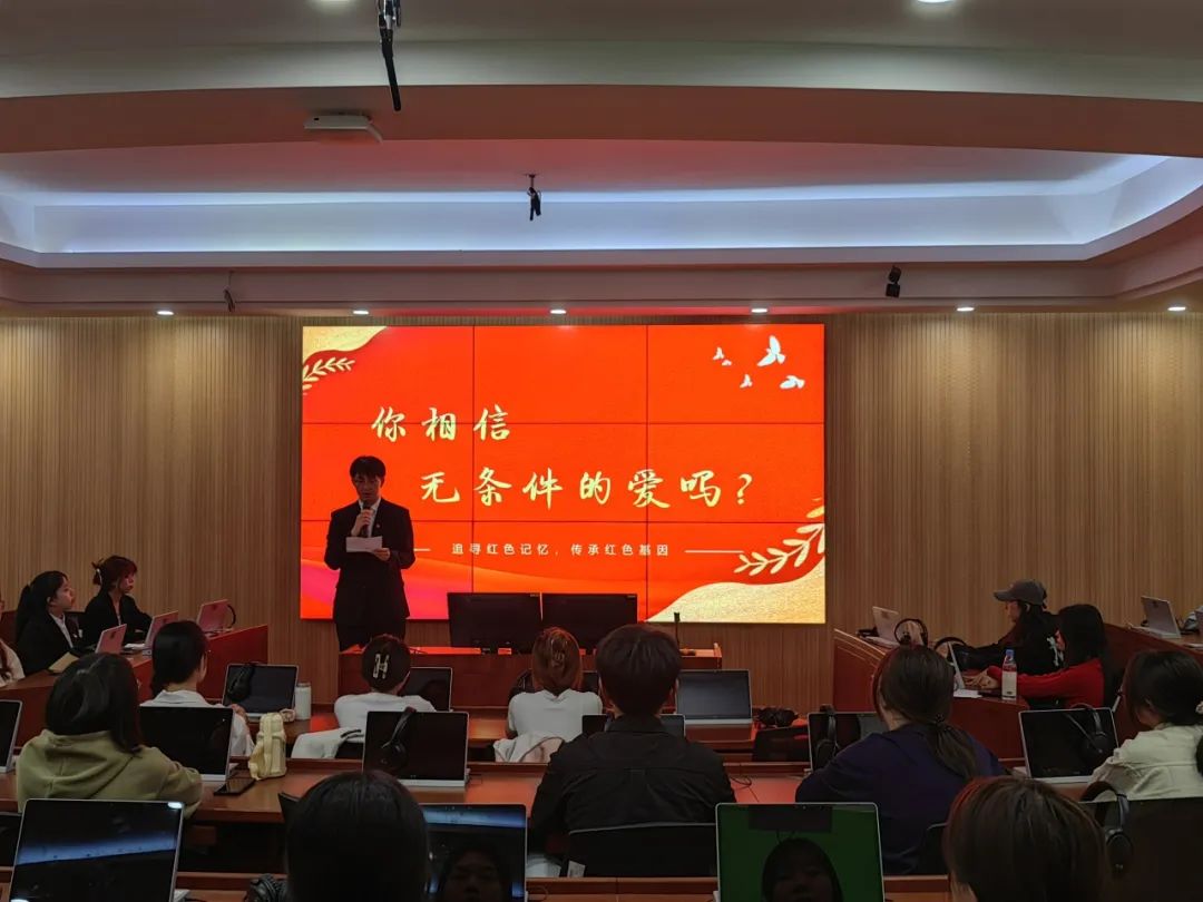 活动伊始,宣讲团成员冷艳茹同学用一首《念奴娇·追思焦裕禄》引入,带领同学们回顾焦裕禄同志一心为民、奋勇治沙的感人事迹,感受优秀共产党员的崇高精神和伟大事迹,激励同学们以老一辈无产阶级革命家为榜样,严于律己,不断增强党性观念和政治责任感,为实现中华民族伟大复兴而奋斗。随后,宣讲团成员李佳赞同学展播了微电影《你相信无条件的爱吗?》,基以此带领大家向抗美援朝革命先驱致敬。影片紧跟采访老志愿军战士的镜头,再现了70多年前那段不平凡的岁月,也展现了为了我们今天的美好生活,革命前辈们做出的努力与奉献。激励同学们铭记历史,心怀感恩,努力学习和弘扬抗美援朝精神,从中汲取继续前行的智慧和力量,努力增强才干和本领,为全面建设社会主义现代化国家奉献青春力量。