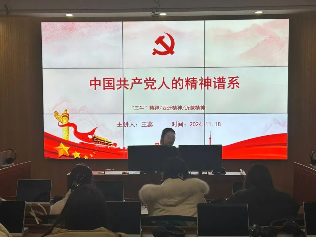 党课开始,王蕊同学首先向大家讲述了中国共产党人的精神谱系的内涵,并对“三牛精神”“西迁精神”和“沂蒙精神”做了进一步讲解。其中,她结合三种精神的产生背景、内涵以及现实意义,指出了各精神的灵魂是“听党话,跟党走,祖国哪里需要我们,我们就去到祖国需要的地方”。在学习“沂蒙精神”时,王蕊同学通过习近平主席多次在山东考察调研重温老区峥嵘岁月时的记录片,增进同学们对于沂蒙精神的理解,生动展现了沂蒙精神不断发展完善的历程。最后,王蕊同学强调,作为新时代青年,必须深刻理解中国共产党人的精神谱系的丰富内涵。同时应当自觉传承与发扬中国共产党人的精神,在新时代新征程中将其融入自身行动,提高思想觉悟,积极向党组织靠拢。