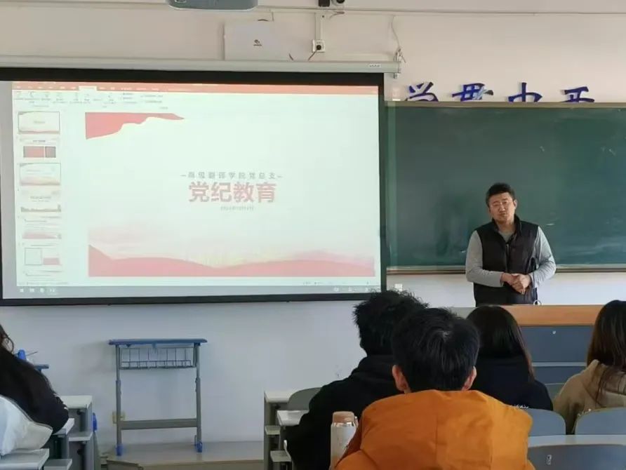 党课伊始,张立伟副书记向大家提出一个问题:何为“党纪教育”?引发了同学们的思考。随后,他分别从党纪教育的地位、作用、方针和原则四个方面和同学们进行深度探讨,让同学们对党纪教育的认知更加清晰。他表示,我们要从实际出发、围绕党的基本路线和党的中心任务、根据党员不同情况有所区别、有所侧重三个方面共同推进党纪教育体系的完善。最后,张立伟副书记对五大原则的具体内容进行了阐述,并告诫同学们在日常生活中一定要做坚持正确的价值观、坚守底线、遵守纪律的新时代青年。