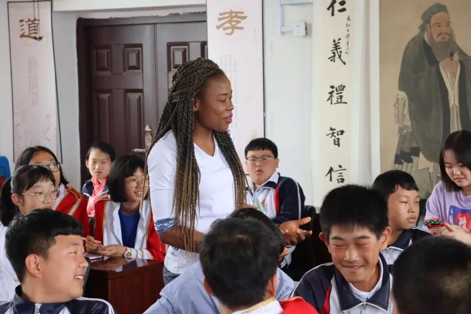 留学生亚伦和王小霞与学校七、八年级学生互动交流。新颖有趣的游戏互动、中外文化的深刻讲解、气氛热烈的互动提问燃起了腰堡学生的英语学习兴趣,丰富了腰堡学生的知识见闻,促进了中外文化的交流。