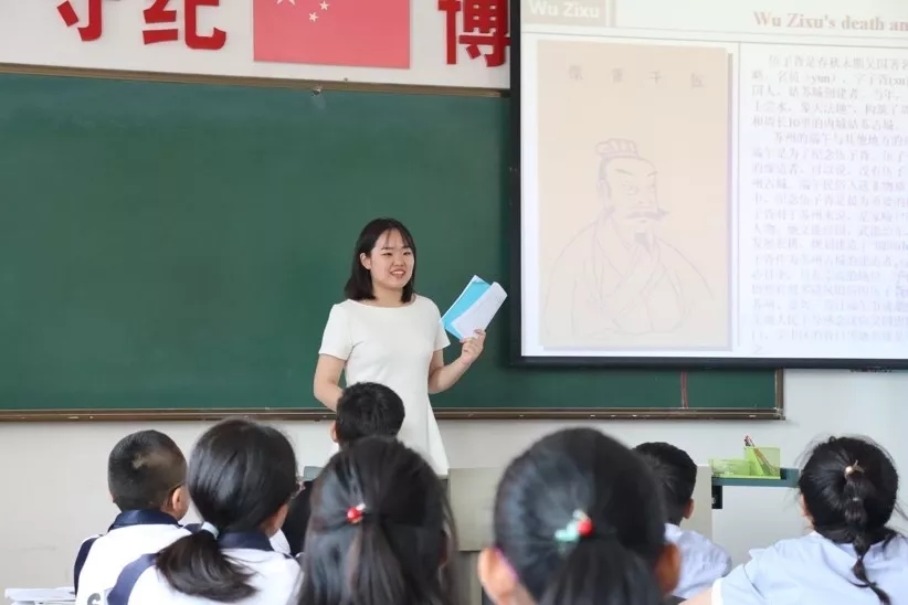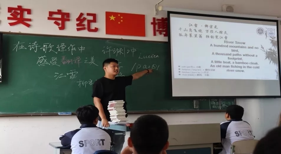 实习学生为腰堡九年一贯制学校的同学们展示了各具特色的英语课。刘晨从诗歌译作讲起,带大家领略翻译之美,握住英语提升与传统文化间的契合点,在引导学生探索中英差异的同时,激发学生对中华传统文化的认同感。王静宜关注学生口语发音,以流畅的表达和精准的发音呈现了一堂发音总结课,状态自然,魅力十足。
