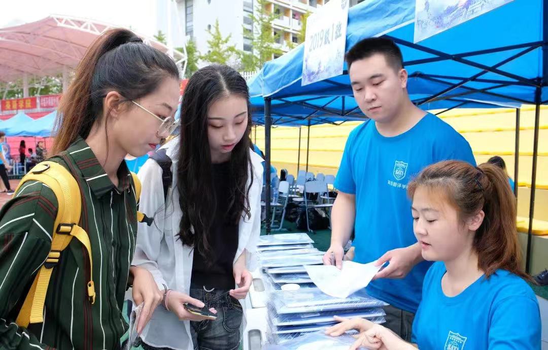 设置了“高翻走廊”、同传箱及VR体验等系列迎新环节。“高翻走廊”向同学们展示了网上博彩平台