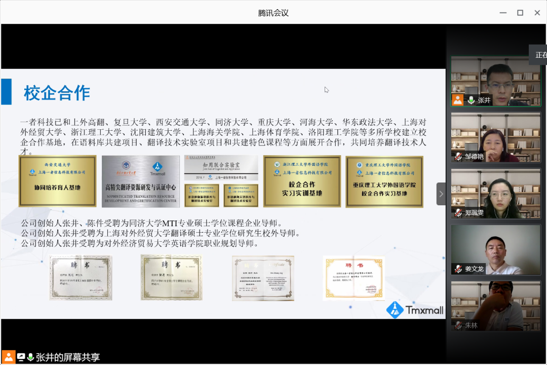 与上海一者信息科技有限公司进行线上会谈,商洽校企合作相关事宜。一者科技公司首席执行官张井、产品经理刘宁赫、运营经理郑珮雯,网上博彩平台推荐