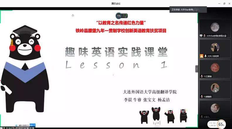 前期基础上,线上教学最终围绕着“英文的听说读写”以及“英美文化普及”展开,授课成员以此为契机与腰堡学校师生展开云端交流,探讨英文知识。此外,为激发学生的学习兴趣从而达到更好的授课效果,教学团队在通过线上模拟课堂检验了课程安排的可行性后,开设了诸多趣味课堂活动,收效颇丰。