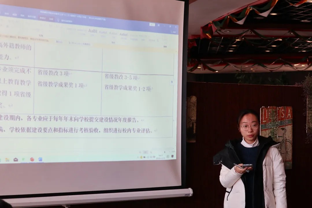 在学科发展、专业建设、人才培养、科学研究等方面军区的较为显著的成绩,但在人才队伍建设、专业内涵发展、科研成果转化、语言服务社会、专业及课程国际化等方面尚存在提升空间。另外,副院长邹德艳结合校级文件,就“十四五”奋斗目标进行介绍,鼓励师生积极投身本科教育教学,促进国家级一流本科专业点的建设。