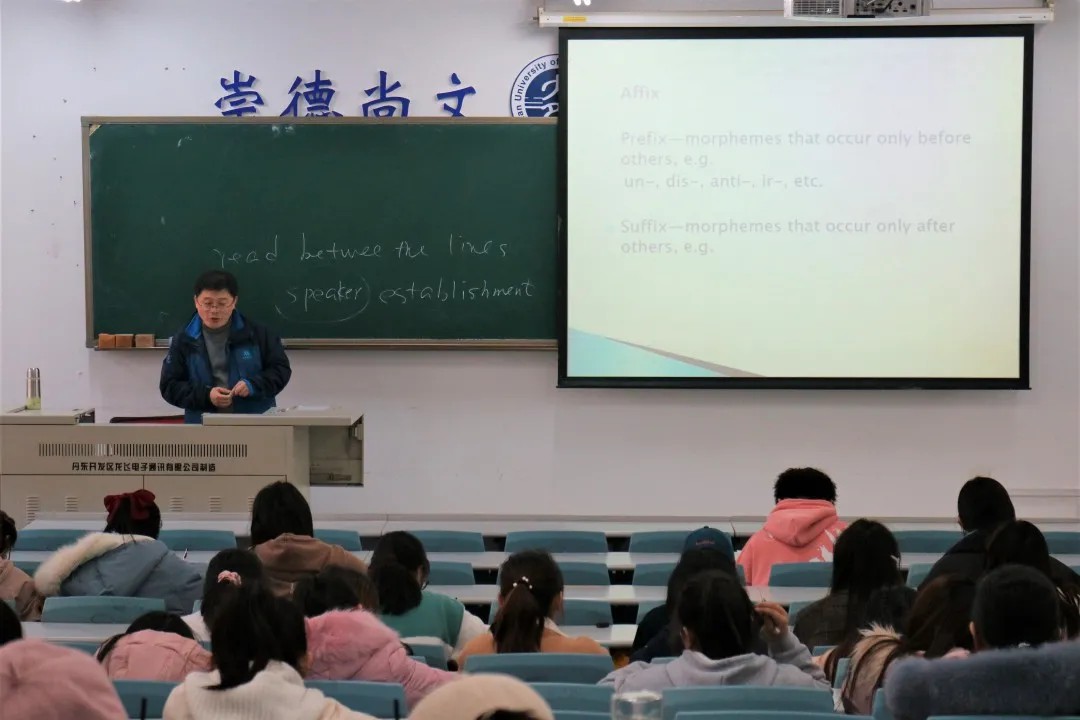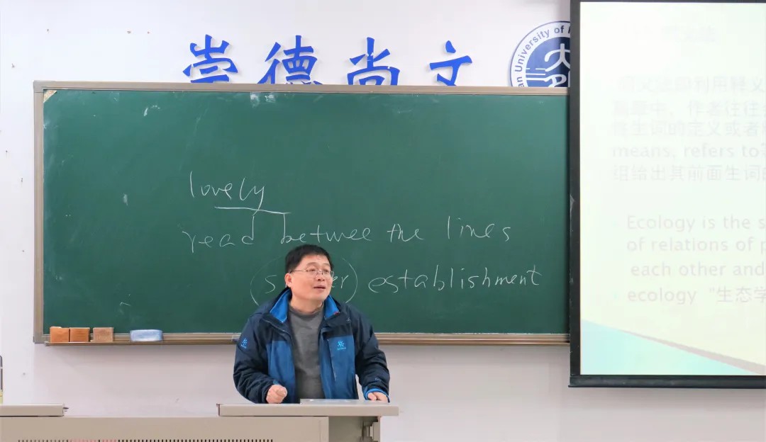 本次讲座中,吴延国老师详细阐述了阅读理解中选择题和简答题测试要求、答题形式及答题技巧。在简洁介绍如何剖析文章及辨析题目后,吴老师以考试真题为例真实直观地向大家展示了推测词义、辨析句子结构及分析句子主干的方法,并依据经验介绍了“辩识选项”、“寻读定位”等技巧。他强调,阅读理解题不仅是对同学们英语知识掌握程度的考察,更是对信息概括能力的考验。