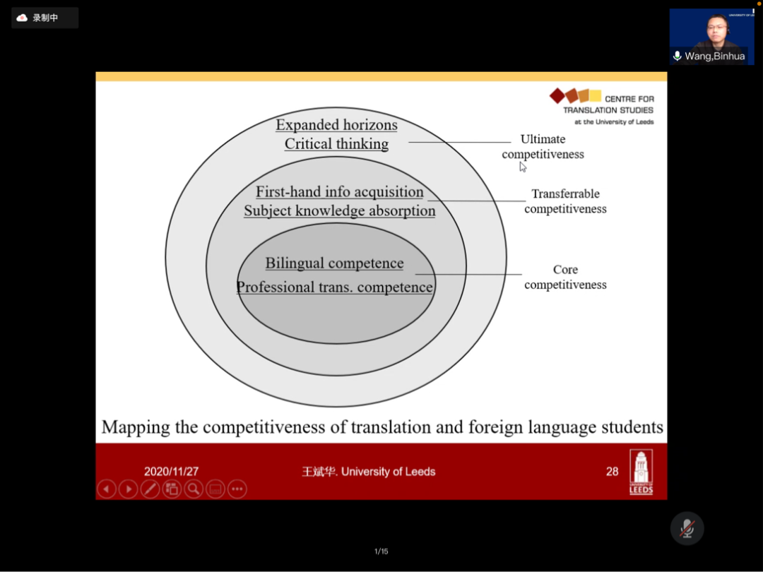 11月27日下午,王斌华教授在腾讯会议开展了题为“翻译和外语专业学生的竞争优势——从我的国内外高校任教经历及热点时事说起”的线上讲座。本次讲座由网上博彩平台推荐