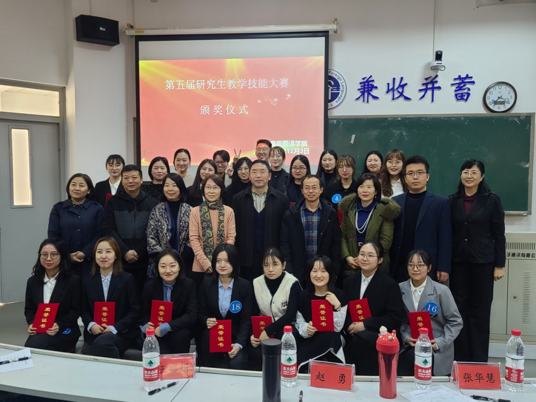 最后,评委和嘉宾们为获奖同学颁发了荣誉证书和奖品。英语口译专业的敖蕾摘得桂冠;周川媛、王春文、刘芷岑三位同学荣获二等奖;陈雪、李晓娜、郭昊洋、高宇婷、穆楠、孙瑜同学获得三等奖;闫瑞瑶、董雅洁、徐赫晨、武丽欣、谢雨凝、魏梦茜、王嘉玮、陈研、周雅伶、张馨元、杨旭升同学获得优秀奖。