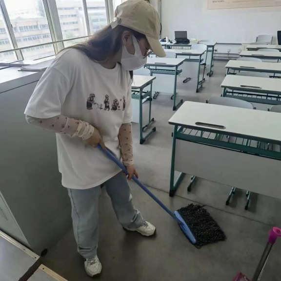 在疫情封校期间,能够抓住这样一个机会,全身心投入到劳动活动中,是一件很幸福的事情。看着经由我们清扫过后整洁一新的教室,我们的成就感着实“爆棚”。同时临近期末,在紧张的学习生活之余,打扫教室也使得我从繁忙的学业中抽离出来,缓解了不少压力。