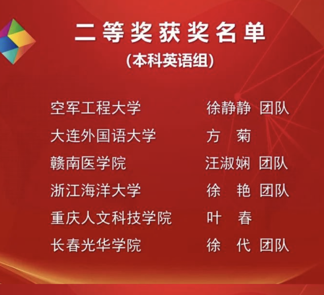 教师方菊获得本科英语组二等奖。