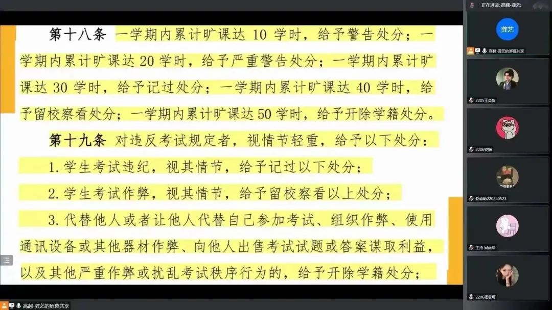 于12月8日下午线上召开期末年级大会,本次会议由2022级辅导员龚艺老师主讲,2022级全体同学参加。