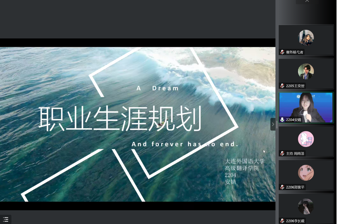 本次期末职业生涯规划展示活动至此圆满收官,各位选手在筹备阶段踊跃报名,赛前精心准备,赛上精彩表现。在充分理解运用课堂知识的基础上了解自我、探索职业道路、明确自身发展的方向,充分展现了高翻新一届学子的风采。青年一代有理想、有本领、有担当,国家就有前途,民族就有希望。正所谓“天下英雄出我辈,一入江湖岁月催。”相信历经本次活动后,新一代高翻学子能够不负众望,向阳生长,且听时代浪潮激荡,奋力谱写人生华章。