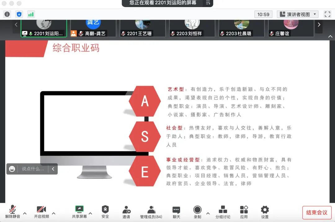 于线上举行2022级职业生涯规划展示活动,2022级辅导员龚艺老师担任本次活动评委兼赛事指导。