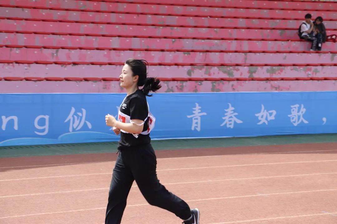 龚艺老师取得教工女子青年组4*200米第一名,400米第三名,60米穿梭接力跑第四名的优异成绩;