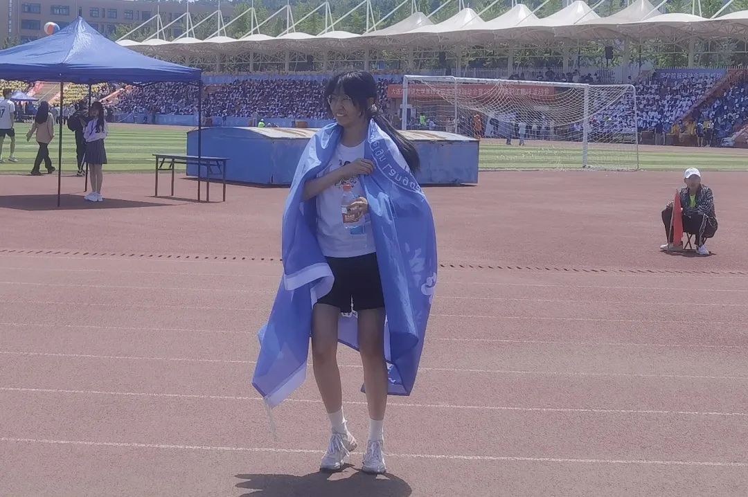 郭晓涵同学取得女子组跳远第三名的佳绩;