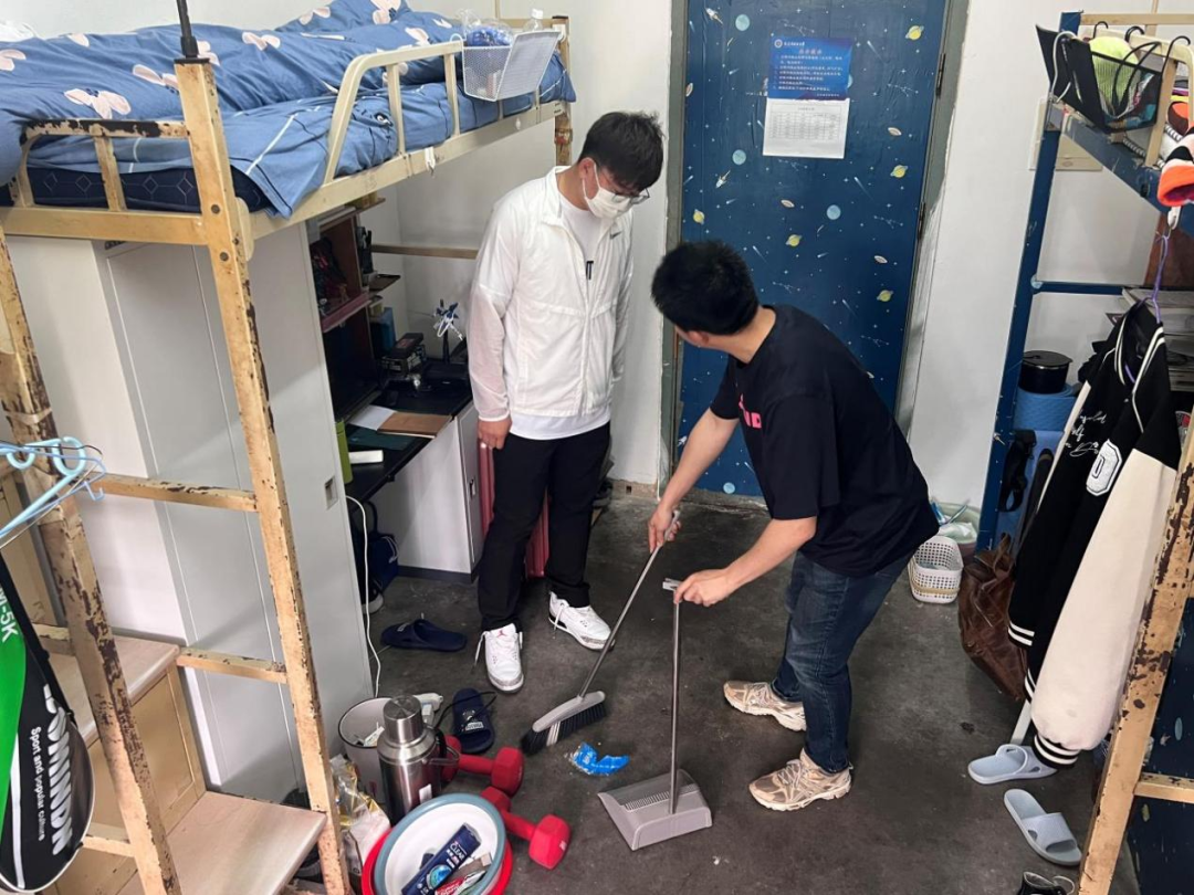 还号召学子打扫寝室卫生,各年级辅导员也亲临学生寝室,对内务整理进行指导。