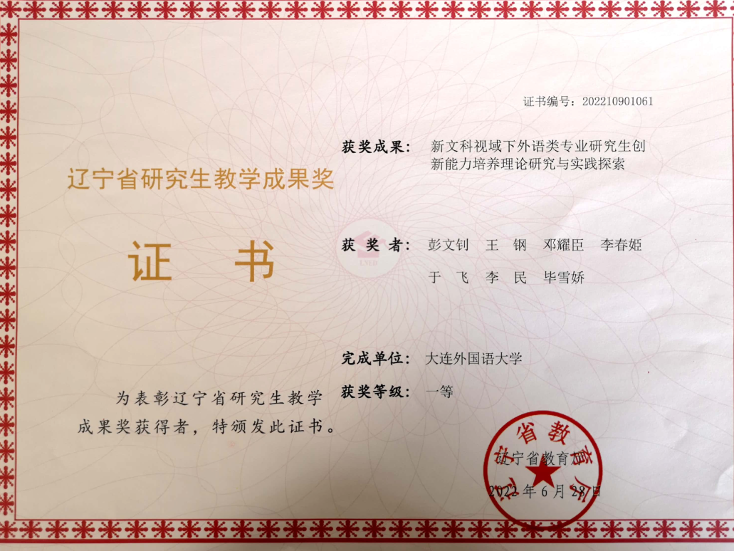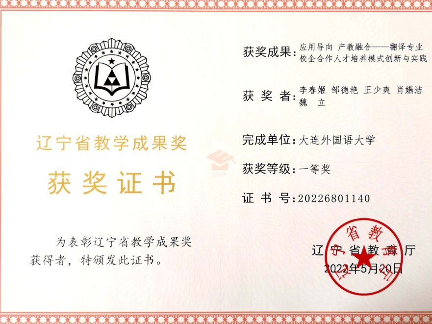 辽宁省本科生教学成果奖一等奖2项