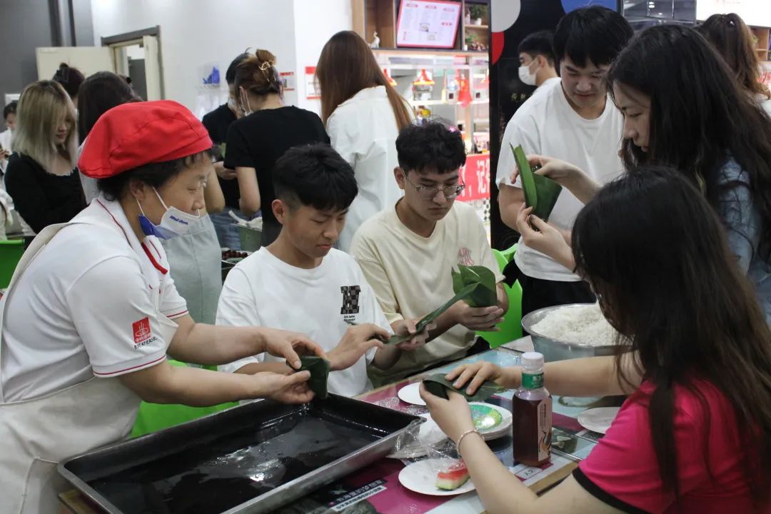 于6月22日在中快餐厅举办包粽子活动,现场热闹非凡,同学们欢聚一堂,共度端午佳节。
