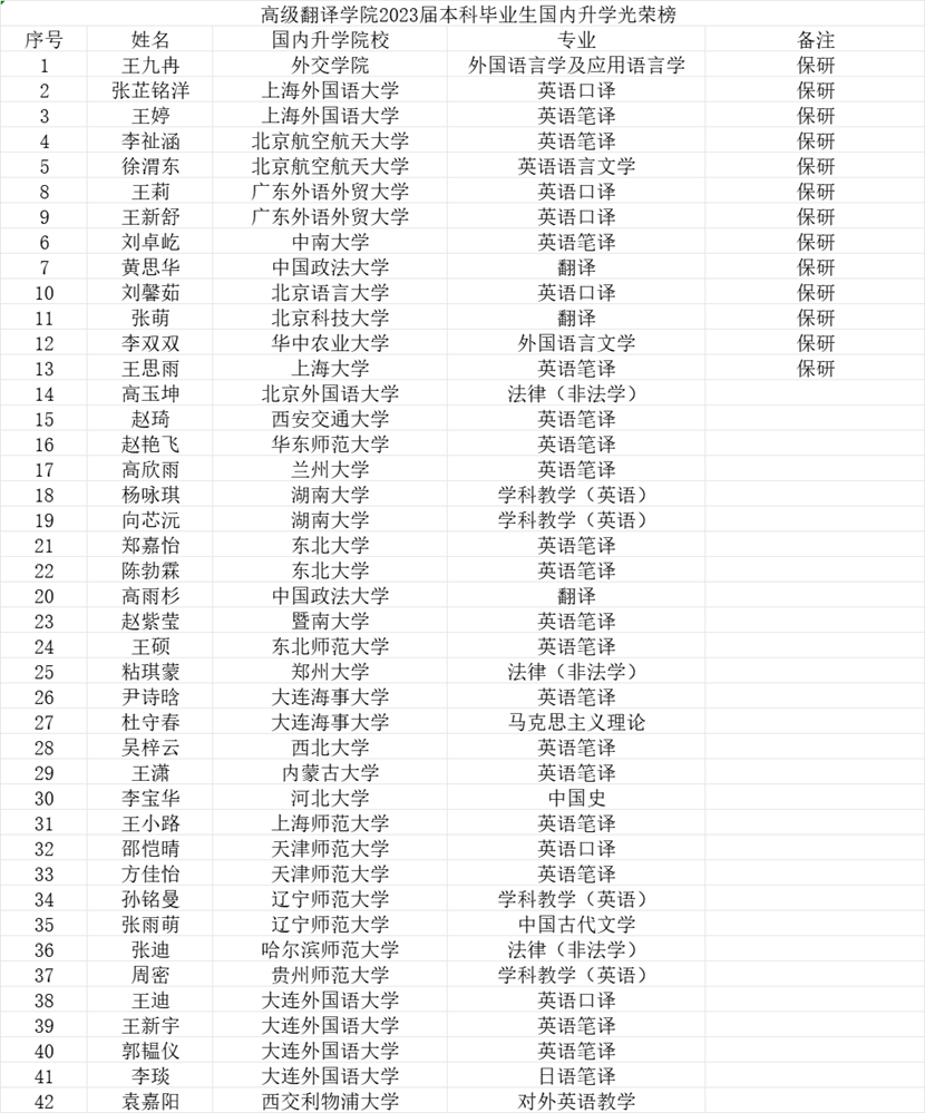 又一升学佳绩。2023届179名毕业生中共有42人成功考取国(境)内院校研究生,10人拿到国(境)外高校offer,升学总人数为52人,升学率约达29%。