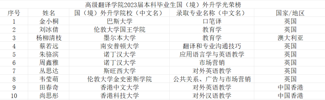 始终秉承我校“育人为本、质量至上、突出特色、科学发展”的办学方针,致力于培养多方面综合发展的复合型翻译人才。四年的本科学习中,2023届毕业生们不断滋养学识、启迪智慧、陶冶情操、增长才干,已然学有所成,在各领域均取得优异的成绩。在网上博彩平台