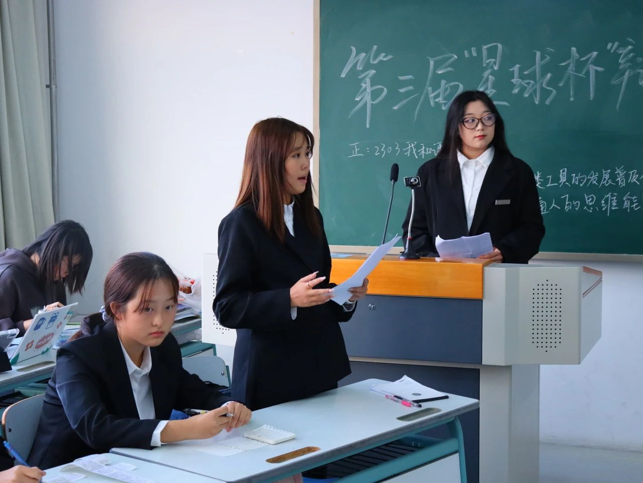 辩论队2021级队长阎文佳、2022级队长陈星屿、杨正鸿担任评委,旨在彰显公平、公正、公开的竞赛原则。