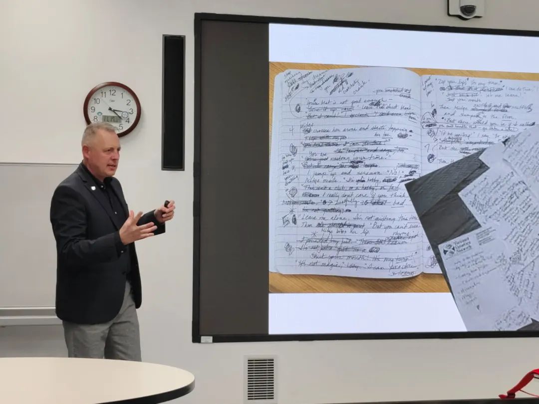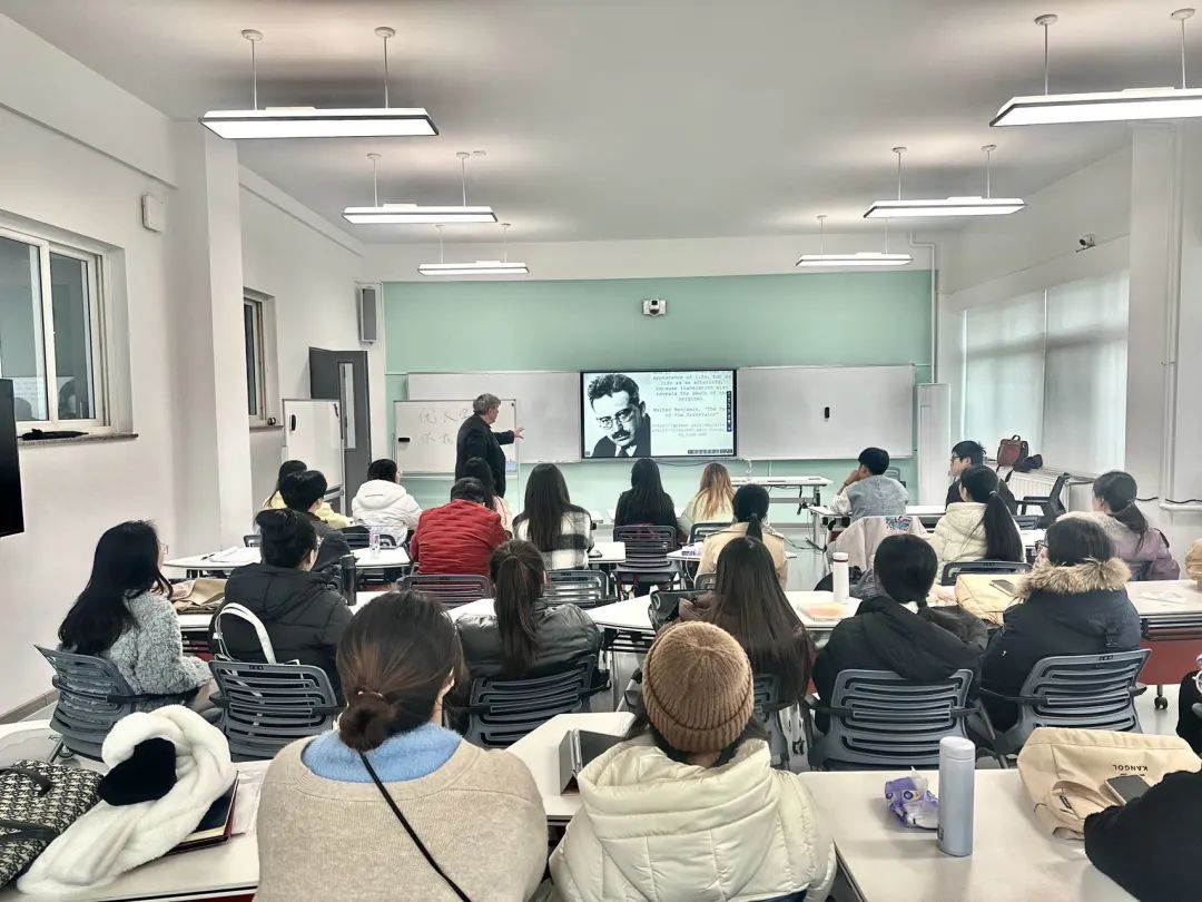 Johnston教授讲座的主题是翻译:缺席、在场与中间的空间。他指出翻译文本存在于与其源语言相同的关系中,而缺席与在场即是定义翻译与原文的关键点,通过法庭翻译的例子,他强调翻译质量对舆论走向的影响之大,译员肩负责任之重,并鼓励译者应积极倾听他者声音,做出有深度、有道德的翻译选择。此外,Johnston教授将语言比作一座冰山,指出译者应着重关注其表层文本之下隐藏的深意,将情感与创造力充分融入于译文之中。通过分析中外诗歌及其译文,他指出翻译具有弥合认知差距、构建跨文化传播路径的重要力量。最后,Johnston教授总结翻译既是连接缺席与在场两个条件之间的桥梁,又是理解世界、思考生命本质的方式。