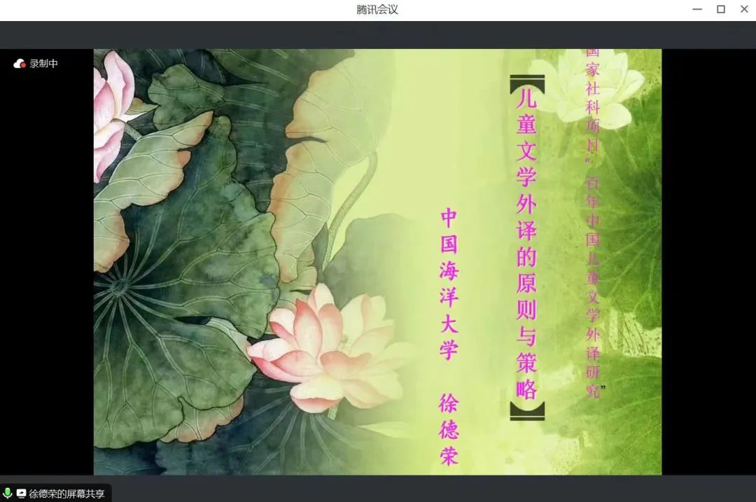 教授、中国海洋大学行远书院副院长、国际处翻译室主任,中国比较文学学会中外儿童文学研究分会副理事长徐德荣作为主讲嘉宾。讲座分别由网上博彩平台推荐