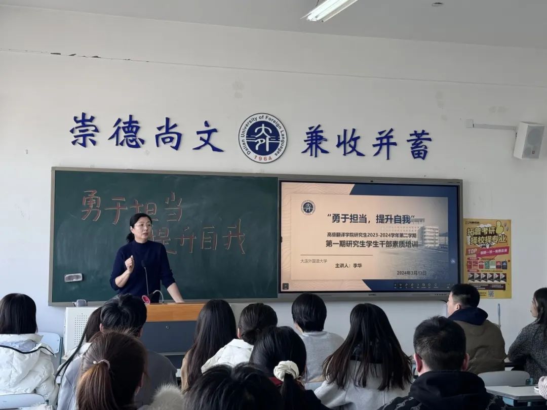 本次培训主题为“勇于担当,提升自我”,旨在增强学生干部队伍凝聚力和团队合作能力,以此提升学生们的综合素质,增强学生们的社会竞争力。李华老师首先强调学生干部要具备高度的政治责任感,要勇于担当、甘于奉献,要有责任意识,有所作为;学生干部队伍作为一个整体,团结是调动一切积极因素的力量源泉。之后,她结合很多学生工作具体事例,告诉同学们如何提高工作效率、提升工作效果、协调与沟通能力的重要性,以及如何更好地以身作则做一名优秀的学生干部等。最后,李华老师希望大家全心学习和工作,在实践中锻炼,坚持不懈,努力提升自我,争取在任期内能有更大的收获和成长。