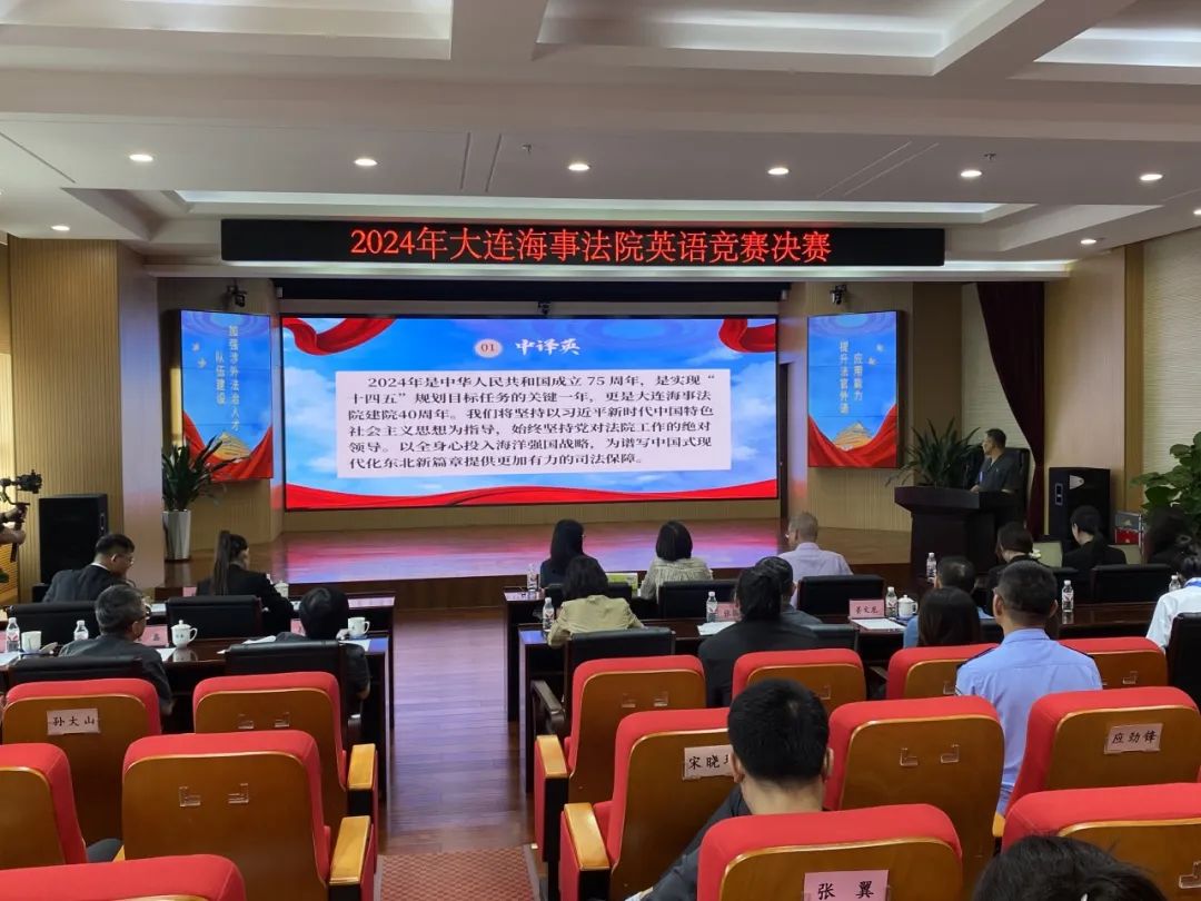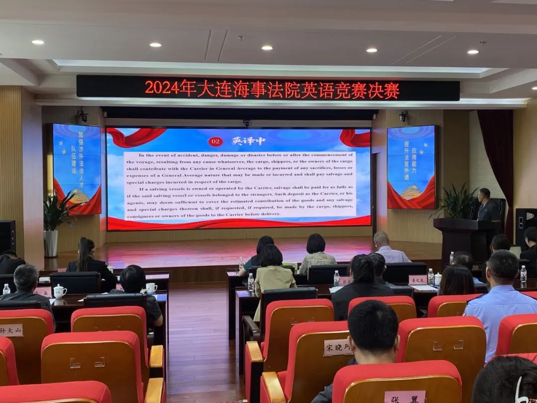 为加强高水平高素质的涉外法治人才队伍建设,提升法务人员外语应用能力及外事翻译水平,“迎接新挑战、开拓新前景”2024大连海事法院英语能力竞赛决赛于7月5日在大连海事法院举办。