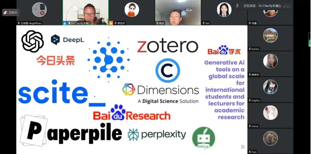 作为翻译专业虚拟教研室的重要活动,在本次讲座中,Campbell博士以自身教学经验为依托,为同学们讲解了热门AI工具的具体使用方法。此次讲座作为虚拟教研室研修活动的亮点,为同学们介绍了智能技术在日常中的应用,还为教育工作者搭建了学习交流的平台,意义重大。网上博彩平台推荐