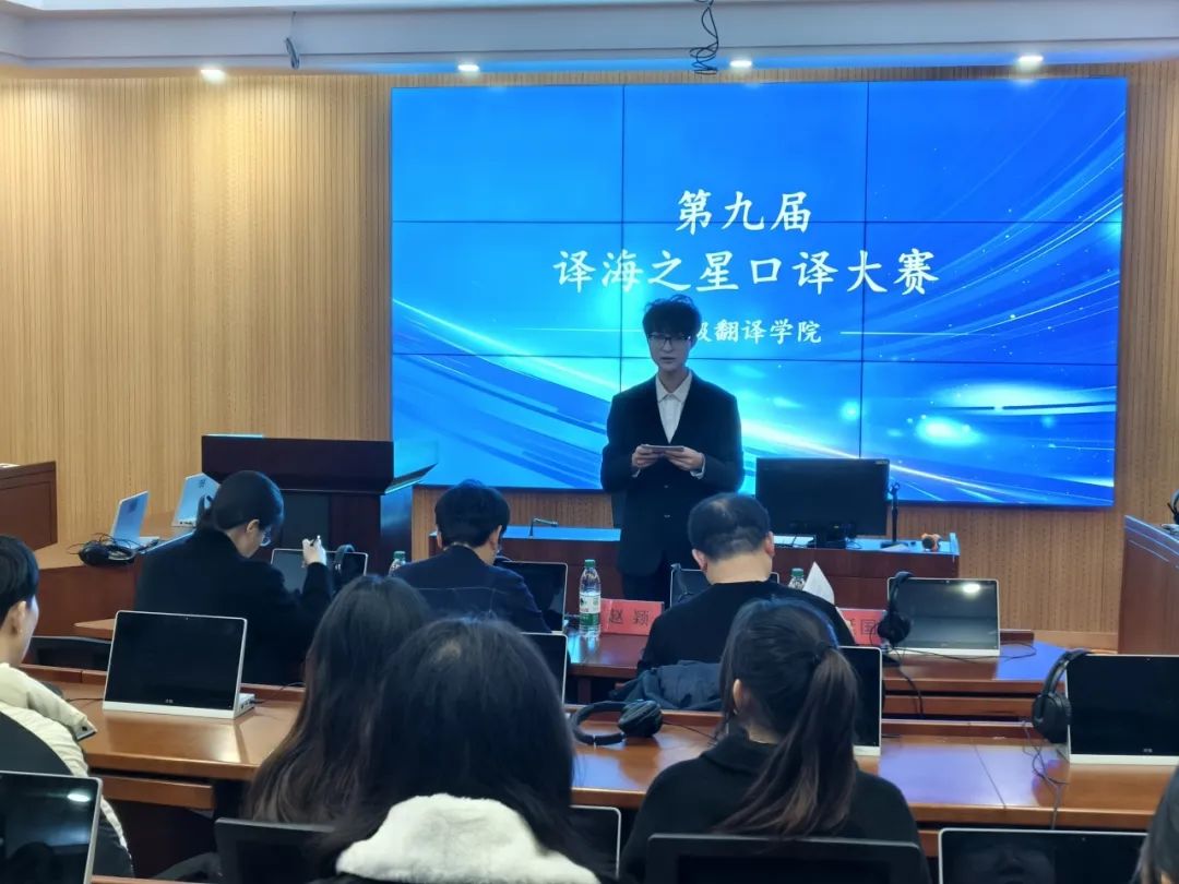 第九届“译海之星”口译大赛决赛在励业楼502和506教室顺利举办。本次比赛旨在激发学生对口译学习的热情,提高口译学习者的专业能力和综合素养。比赛分为高年级组和低年级组两个组别,选手们全身心投入,为我们带来了一场扣人心弦、精彩纷呈的口译盛宴。
