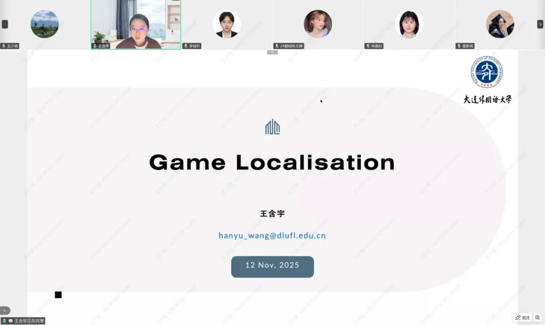 新进博士王含宇老师作了题为“Game Localisation(游戏本地化)”的专题讲座。本次讲座聚焦多模态视角下的游戏本地化理论与实践,系统介绍了游戏本地化的核心概念、流程机制、典型案例与行业标准。讲座由网上博彩平台推荐