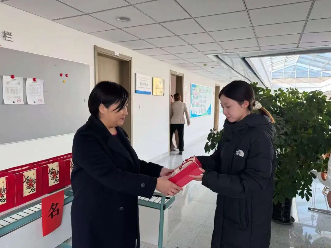 党总支书记姜文龙、院长邹德艳、党总支副书记张立伟、副院长许丹、副院长王少爽,教学秘书雷建,以及学生辅导员王楷瑞、龚艺、邹金池一同到场,为2026届考研学生送去亲切慰问与暖心助考礼包。