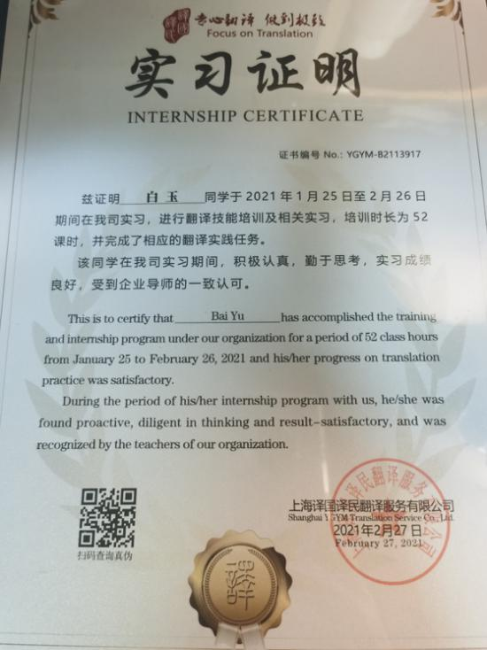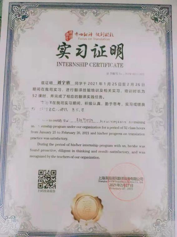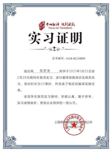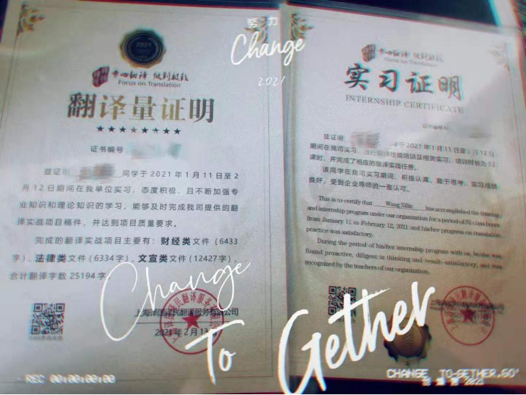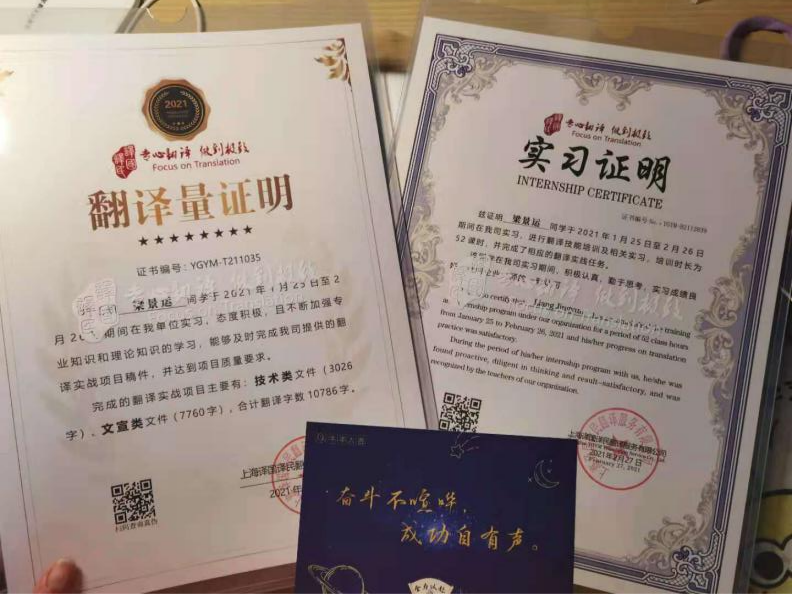 总的来讲,译国译民对于我来说是一份宝贵的实习经历,它让我在寒假期间每天有规律地学习,充实自己,也给我提供了一个非常好的实习平台,让我学习到了很多翻译技巧和策略,更深入地了解语言服务行业,实习后拿到一份不错的实习证明,也可以为以后的简历增添光彩。更重要的是,通过这次课程的学习和直播中各位优秀老师的讲解,也让我对未来的职业有了比较清晰的规划。