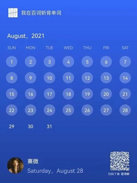 21天养成一个习惯。每个假期的打卡都变成了一种享受,可能在车上,可能在散步,也可能是某个翻来覆去的夜晚,打卡单词已经变成了一种快乐,不断学习充实自己。转眼即将大四,打卡单词可能是大学四年假期必不可少而且非常充实的有意义的事!学长学姐们的假期路程即将结束,但打卡永远不会停滞步伐,坚持是一件很酷的事情,希望学弟学妹们坚持下去!