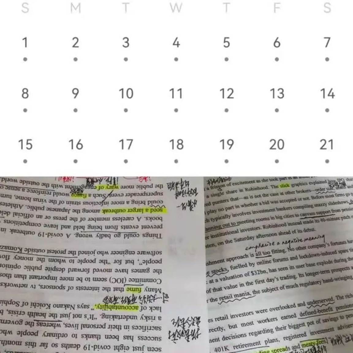 我渐渐将记单词划归为翻译练习的一部分。从前是按照记单词软件或是单词书来一页页地背,每天对着厚厚的书本和数字,也会在内心拿自己的词汇量与别人相较,时间一长难免有种乏力感。长久以来由于这样的思维惯性,我面对单词书时常常忐忑不安。现在我明白了,单词的发现应该来源于平时的练习,如果能在翻译时找到一个实用的新词来替换旧词,不仅有助于提高译文质量,也增加了词汇量的积累。虽然单词应该放在翻译中学习是我早就知道的道理,但从前一直不得要领。即使是微不足道的细节,通过一点一滴的改变和坚持,总会有点突破。