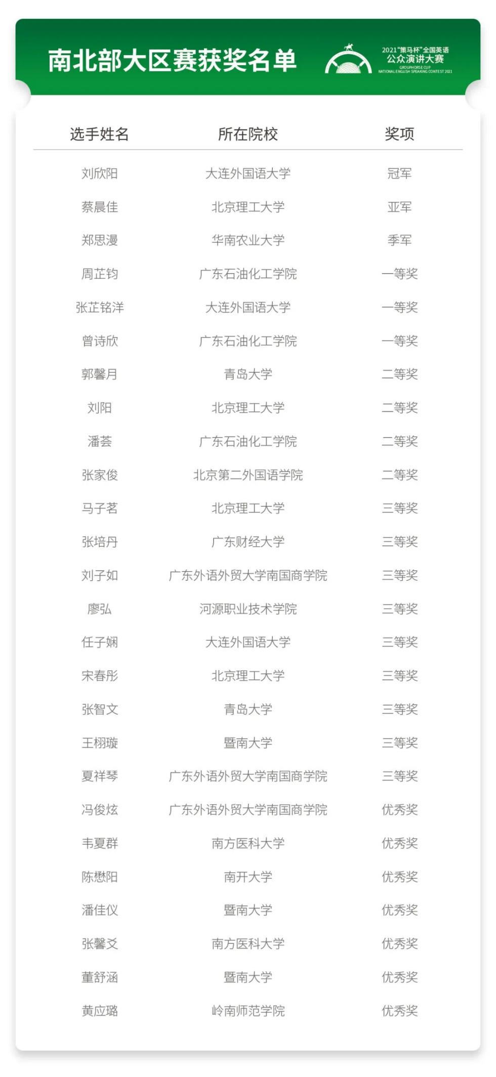 2021“策马杯“全国英语公众演讲南北大区赛已于11月28日落下帷幕,由于疫情防控要求,本次线下南北大区赛采用线上实时互动的形式进行。比赛共分为两个阶段,第一阶段为定题演讲,第二阶段为即兴演讲和评委问答。经过激烈角逐,网上博彩平台推荐