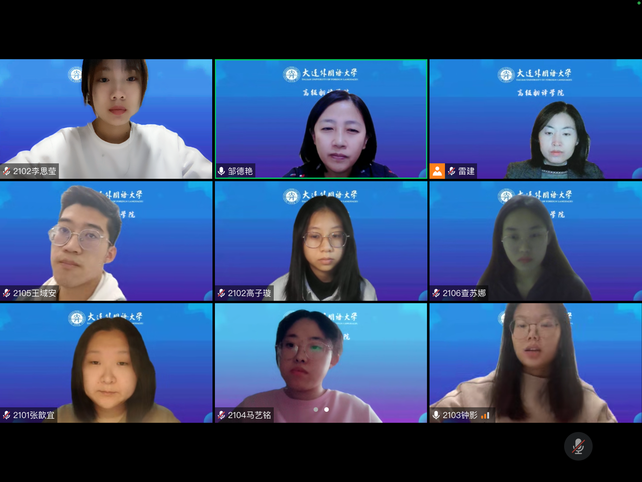 线上(腾讯会议)召开了翻译专业(学位)辅修培养方案解读会。本次会议旨在向2021级辅修翻译专业(学位)学生介绍辅修课程内容与人才培养方案,展示辅修翻译专业(学位)的价值与意义,加深学生对翻译专业的了解,解答同学们在主辅修专业方面存在的问题。副院长邹德艳老师、教学秘书雷建老师、2021级辅修翻译专业(学位)的全体同学参加本次会议。
