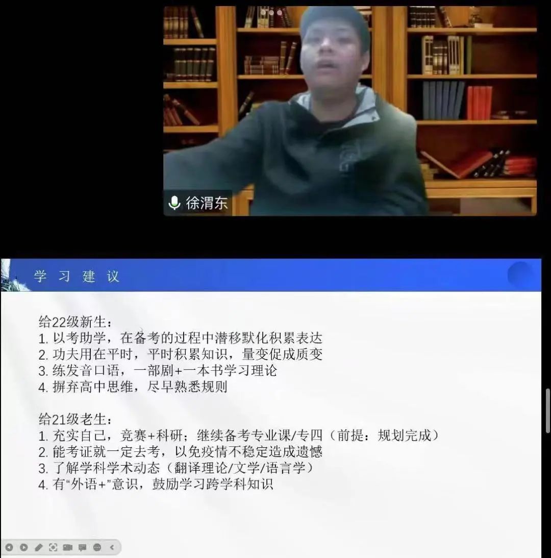 于线上举办了第八十期高翻主讲人活动,本次活动邀请到了徐渭东同学作为主讲人,他以“有关保研学习的个人经验谈”为主题,向同学们进行了宣讲。