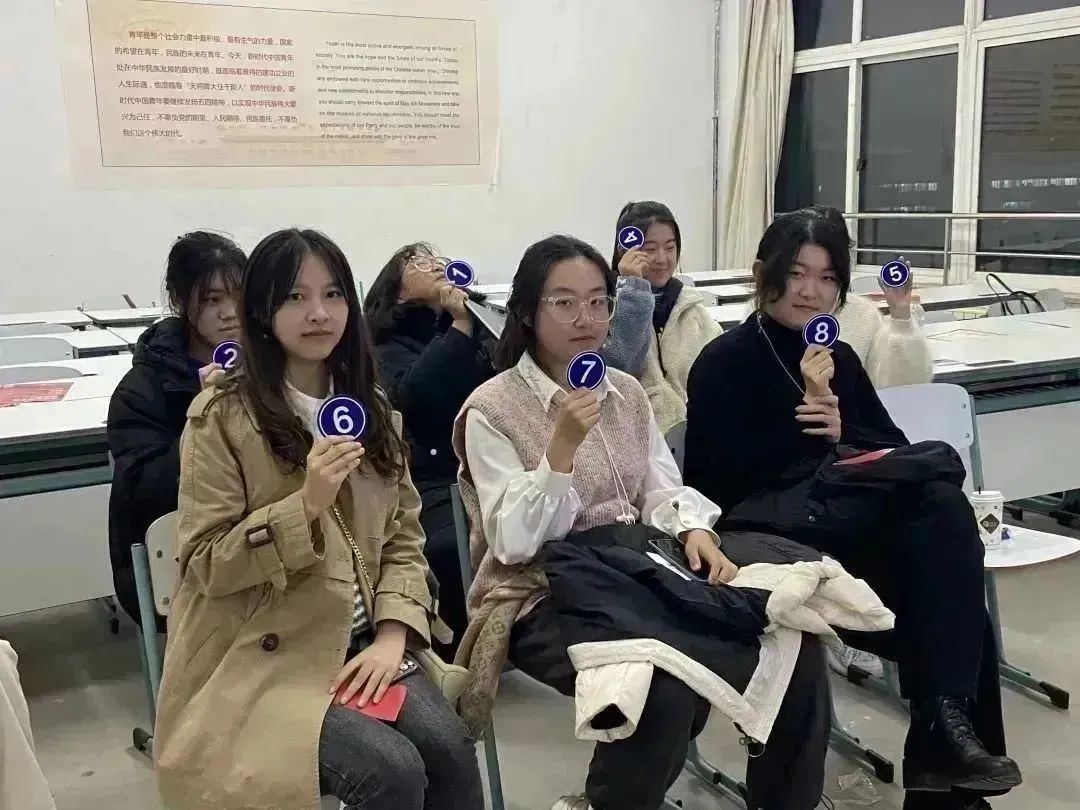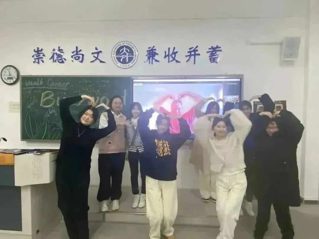 11月14日晚,同学们准时到达教室参加“Buzzword”主题英语角活动。作为流行文化的一部分,流行词在网络交流中备受青睐。大家分享了网络上各类流行词并介绍了它们的来源和意义,如“6”、“Ice cream killer(雪糕刺客)”等。大家听到自己熟悉的词语后,不约而同地相视一笑。Daniel还引导同学们讨论了网络热词兴起所反映的社会现象,思考了“GOAT”、“ILY”等缩略语对于语言使用的影响。他指出,流行词的确能使人们的交流更加快捷有趣,但也可能会侵蚀语言本身,阻碍信息传播。讨论完成后,活动进入到英文版“谁是卧底”的游戏环节,气氛变得紧张刺激,大家谨慎描述词汇,仔细寻找破绽。游戏结束,同学们走上讲台与Daniel作出“比心”手势,合影留念,互相告别。