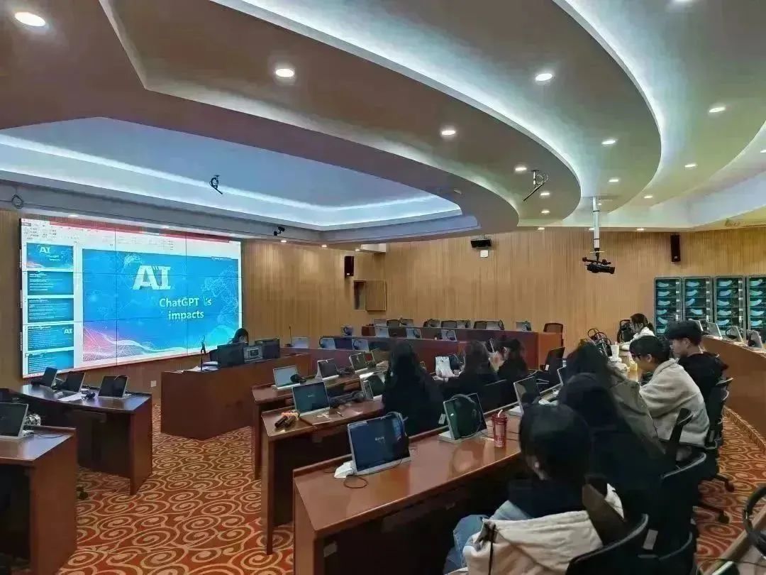 于励业楼5楼虚拟仿真口笔译实训中心举办了本学期第七次英语角活动。本期英语角以“ChatGPT’s Impacts”为主题,邀请了外教Daniel线上出席。本次活动增加了辩论环节,同学们和Daniel针对ChatGPT对教育的影响进行了批判性思考。