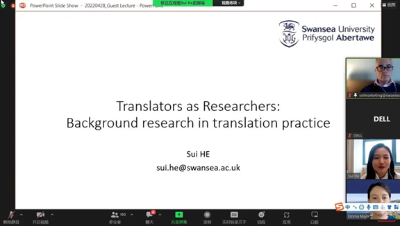 组织开展以“背景研究与翻译实践”为主题的线上讲座。本次讲座特别邀请到斯旺西大学汉英翻译和口译讲师Dr.Sui He主讲,以翻译与实践的关系为切入点,深刻论述了背景研究在翻译实践中的启示意义。网上博彩平台推荐